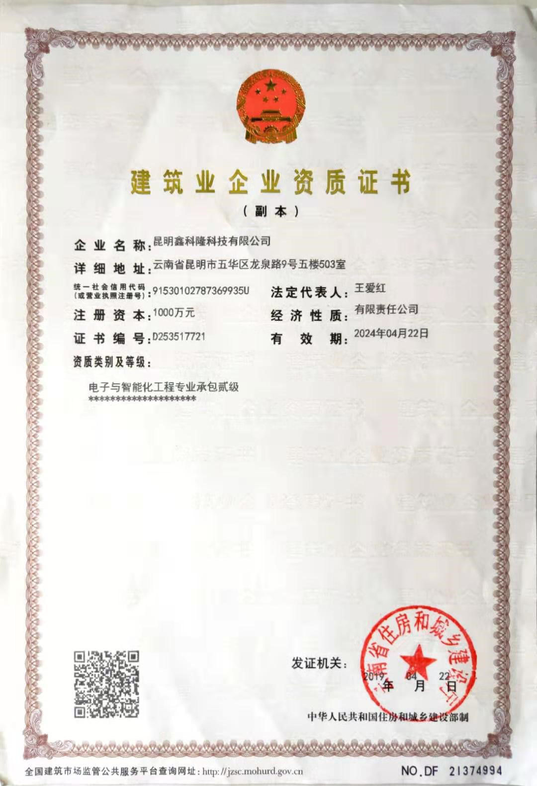 国家颁发认证的多项资质: